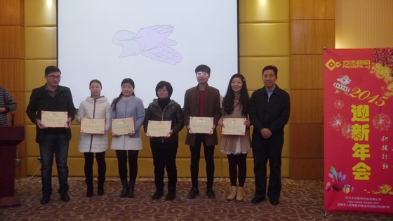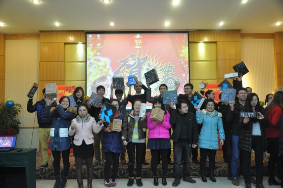 隨著年會接近尾聲,我們公平公正的評委組也選出了此次年會團隊表演前三甲和個人表演前三甲,并由王總親自頒獎。自此,長達一天的新年聯(lián)歡會也落下了帷幕。每個人都抽到了屬于自己的獎品,或大或小都已不重要,重要的是這種充滿激情、充滿活力的團隊,已將大家?guī)肓诵碌呐_階。